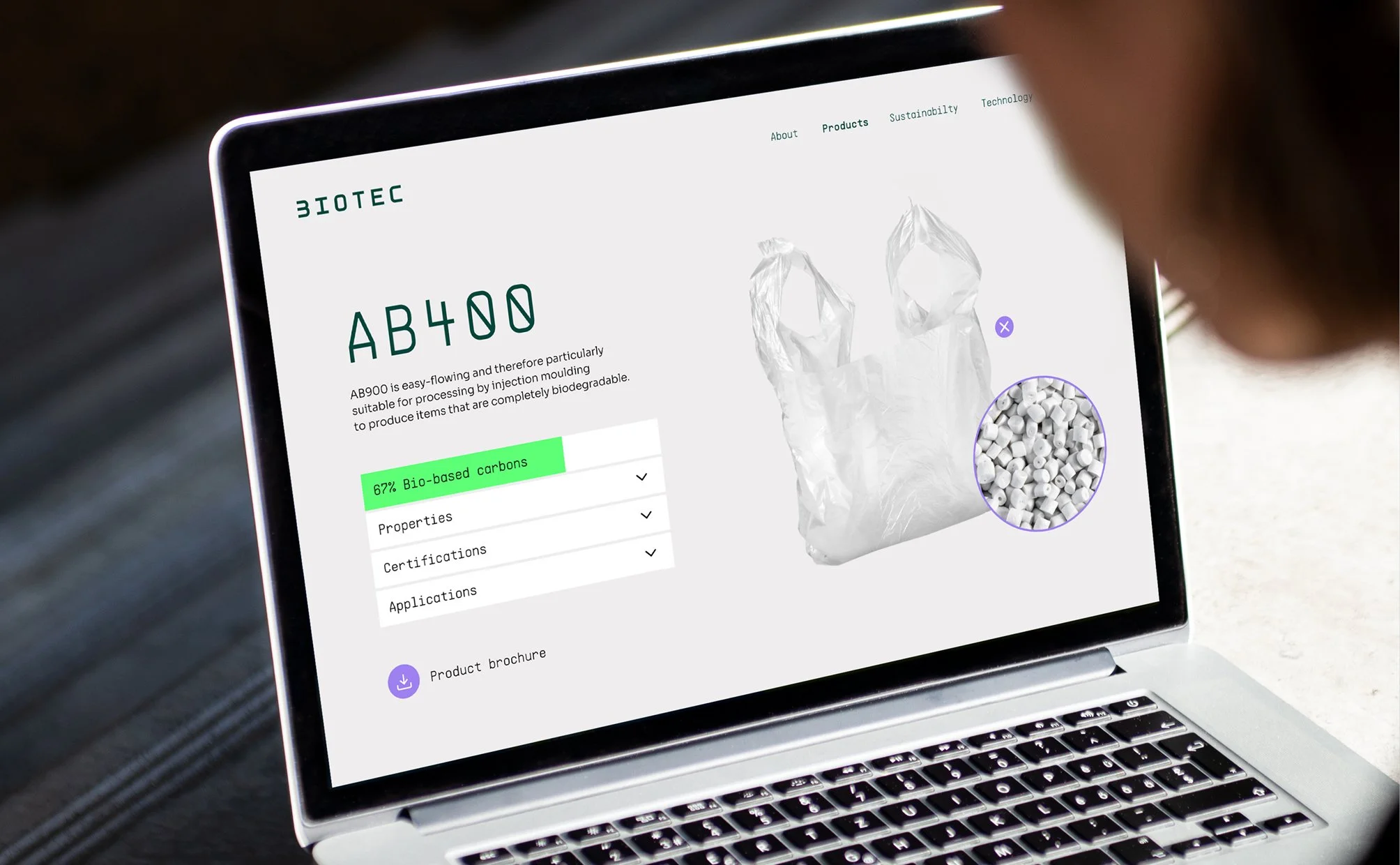 Biotec is one of Europe's leading manufacturers of biodegradable packaging and technical biopolymer components. After years of growth and internal development, the positioning on the market and the outdated visual identity needed to be fundamentally redesigned.